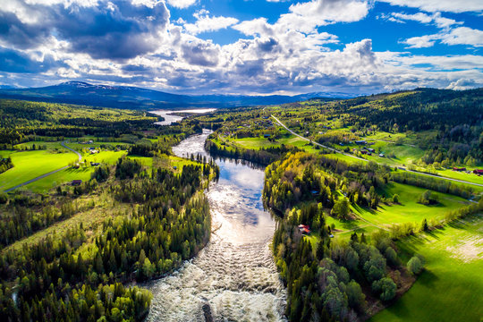 The country of Sweden in Northern Europe on the Scandinavian Peninsula. Sweden is bordered by Norway to the west. The border between Sweden and Norway is in the Kolen Mountains. Finland is northeast of Sweden, and the Baltic Sea and Gulf of Bothnia are to the east and south. Sweden has thousands of lakes, streams, mountains and rolling hills. In northern Sweden there are a lot of snow-covered mountains and forests.